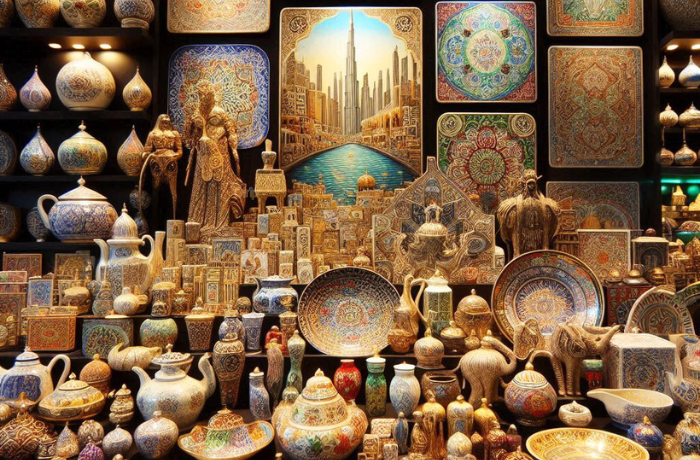 Tại đây, bạn có thể mua mô hình tháp Burj Khalifa, đèn Aladdin, lạc đà gốm. Hay tranh cát sa mạc – những món đồ thủ công cực kỳ tỉ mỉ.