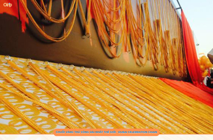 Dubai – “thành phố vàng” – lập kỷ lục với Dubai Celebration Chain. Chiếc dây chuyền dài 5,5 km, nặng hơn 200 kg, làm thủ công tinh xảo.