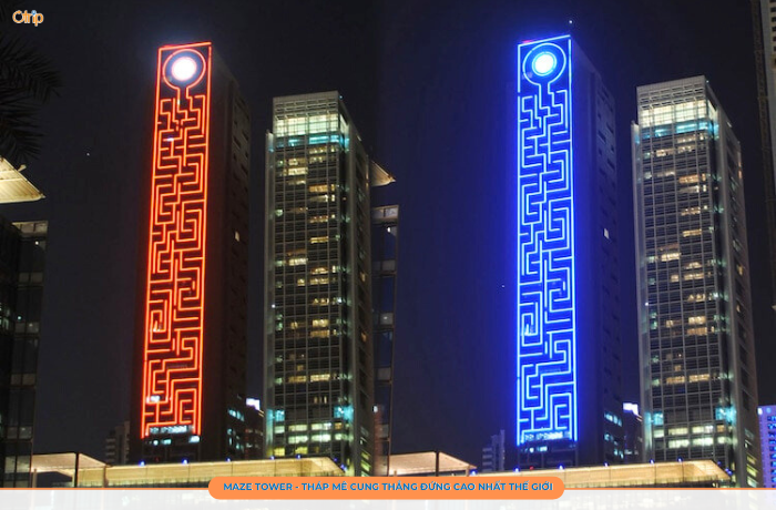 Maze Tower cao 210 m, mặt tiền là một mê cung khổng lồ. Ban đêm, hệ thống đèn LED biến công trình thành kiệt tác ánh sáng.